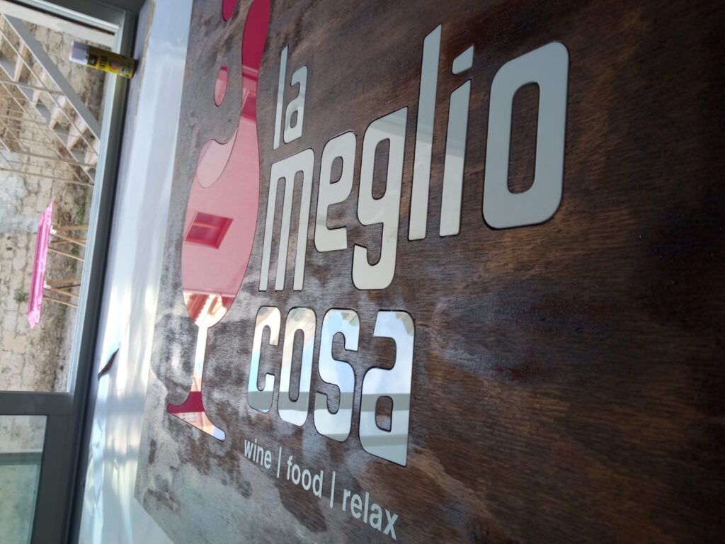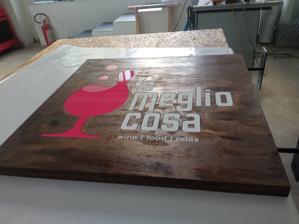 realizzazione insegna in legno e plexiglass per La Meglio Cosa