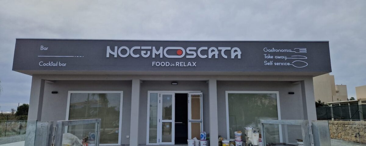 realizzazione e montaggio insegna a rilievo per Noce Moscata